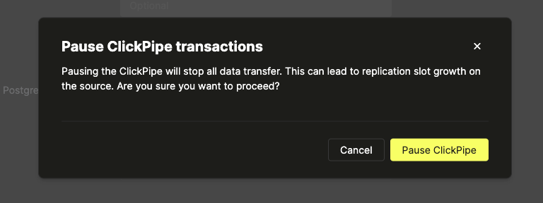 Postgres ClickPipe를 일시 중지하는 단계